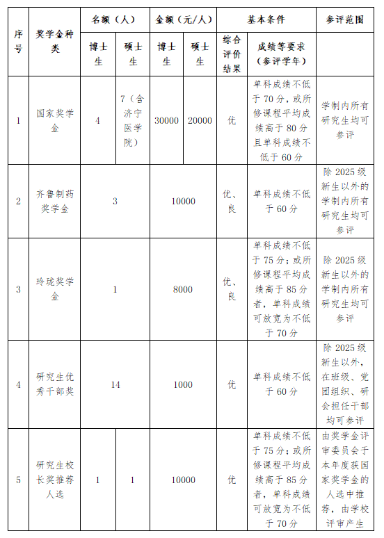 (1)申请各类研究生奖学金,科研成果均不允许重复使用(校长奖学金除外);科研成果界定截止时间为2025年10月15日。