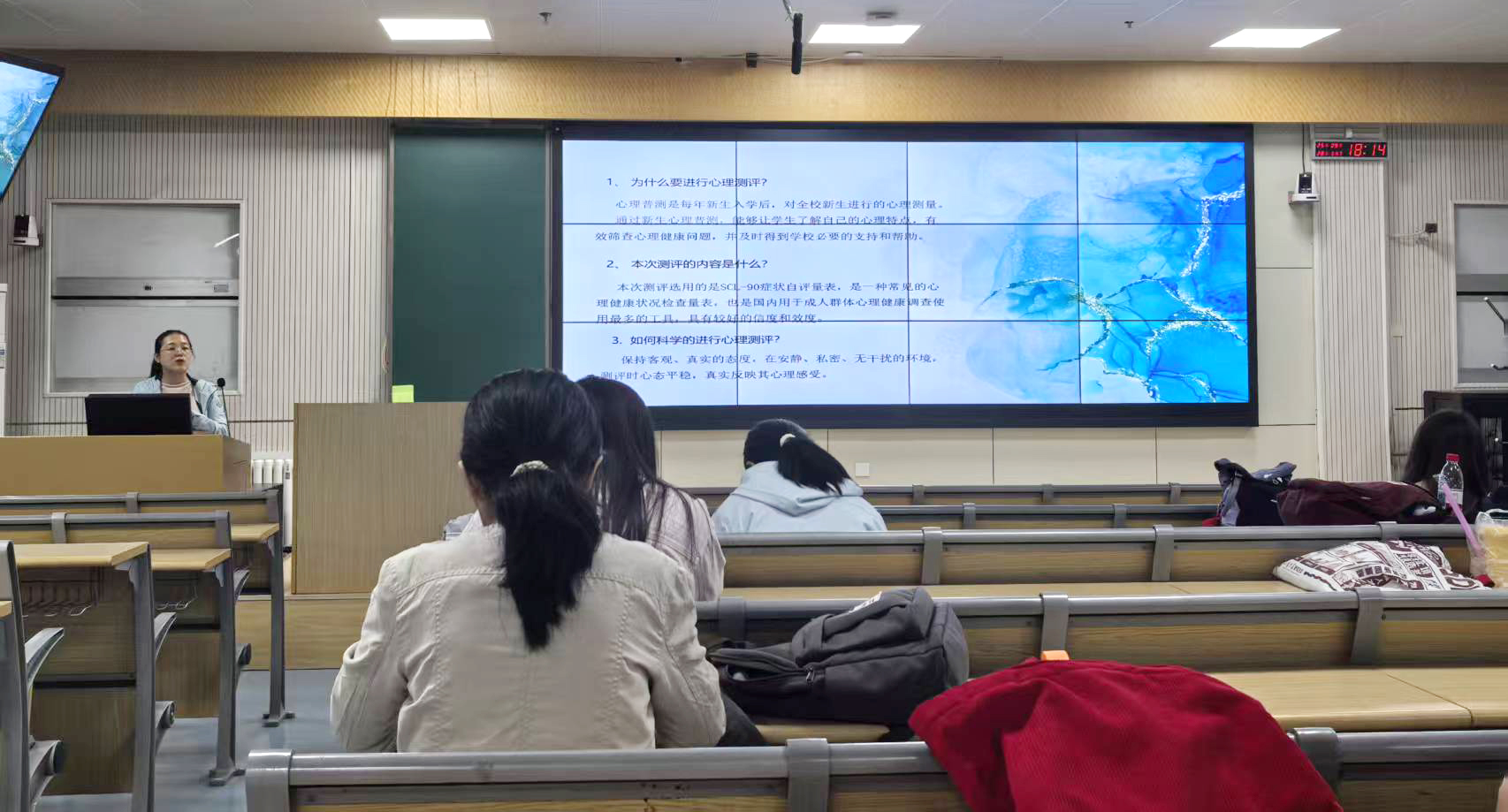 本次心理普测聚焦入学适应、情绪、自我、人际、网络行为等方面的情况。测试开始之前,主试教师葛帅向同学们详细介绍了心理普测的目的意义、测评流程、注意事项,强调了心理普测是帮助学生了解自身特点,找准自身目标和发展方向的有效途径,提醒同学们要稳定心态,把握节奏,如实作答,确保测评结果尽可能的客观与准确。