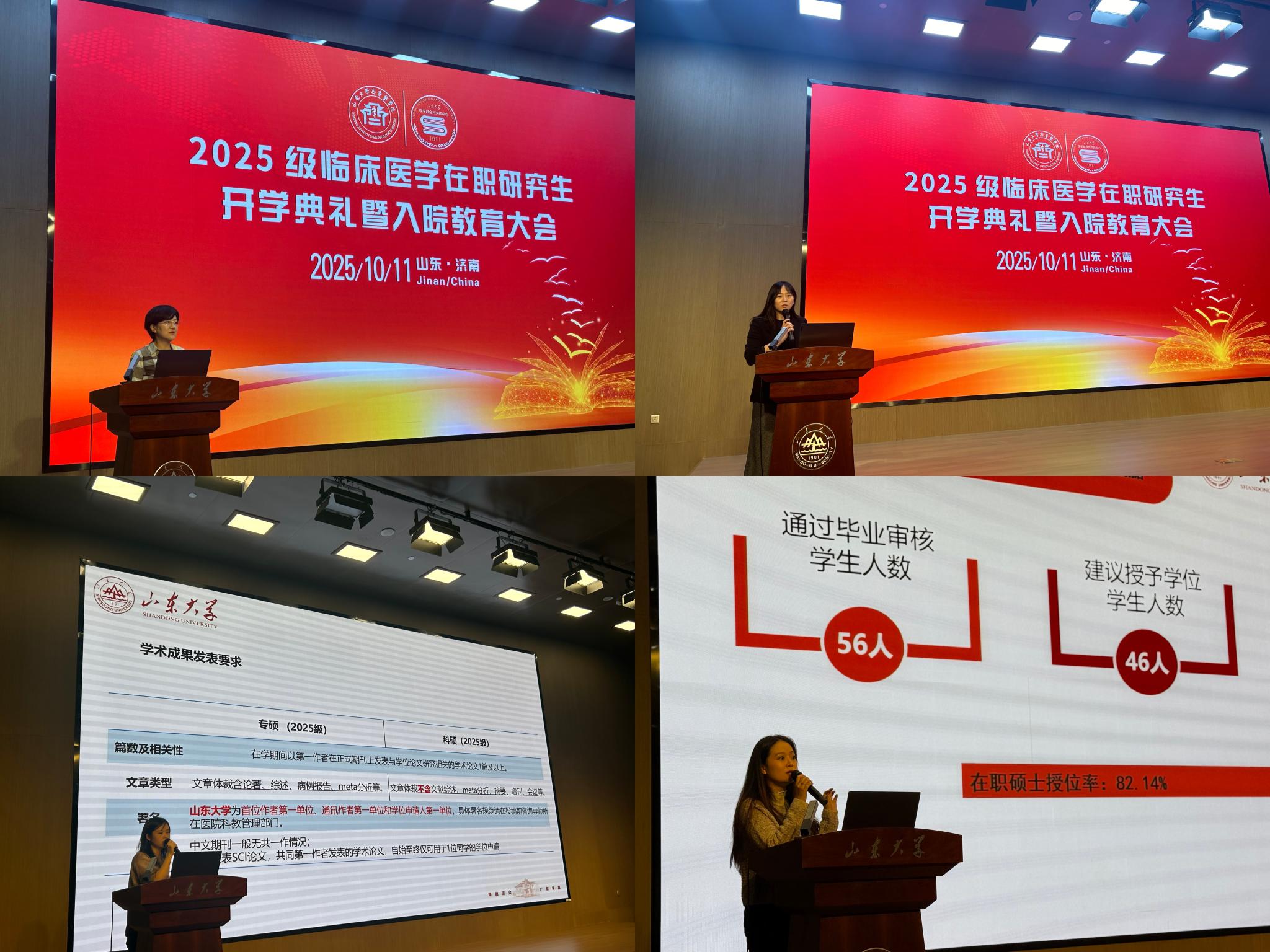 10月11日、10月12日,35222葡京集团(下简称“35222葡京集团”)2025级在职研究生入学教育大会与科研基本训练专题讲座在趵突泉校区综合科研楼医道大学堂成功举办,大会及讲座在齐鲁医学院教学管理办公室指导下,由35222葡京集团主办,来自35222葡京集团与基础医学院的70余名2025级在职研究生线下参加。3522集团的新网站第二医院(第二临床学院)教学部主任林晓英出席并致辞,35222葡京集团副主任、研究生办公室主任马兆垠主持。